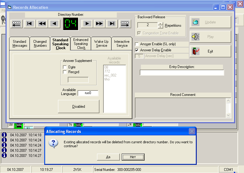 Окно: "Backward Release :Repetitions" - Сколько раз повторить сообщение, перед тем как