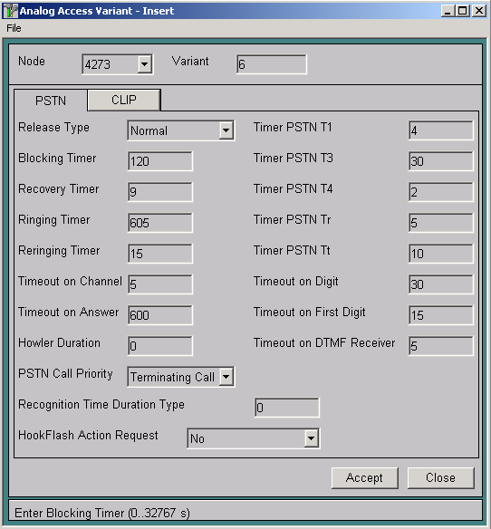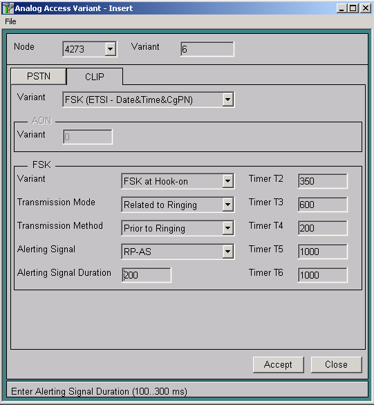 По умолчанию при включении функции CLIP на номерах станции Si2000 задействуется функция определения номера русского стандарта (для аппаратов "Русь", "Фаэтон" и прочих), по умолчанию этот вариант АОН- "0". Для задействования функции Caller-ID (американский вариант АОН) необходимо создать новый вариант АОН через меню CMG- Access- Analog- Variant - Insert со следующими параметрами: