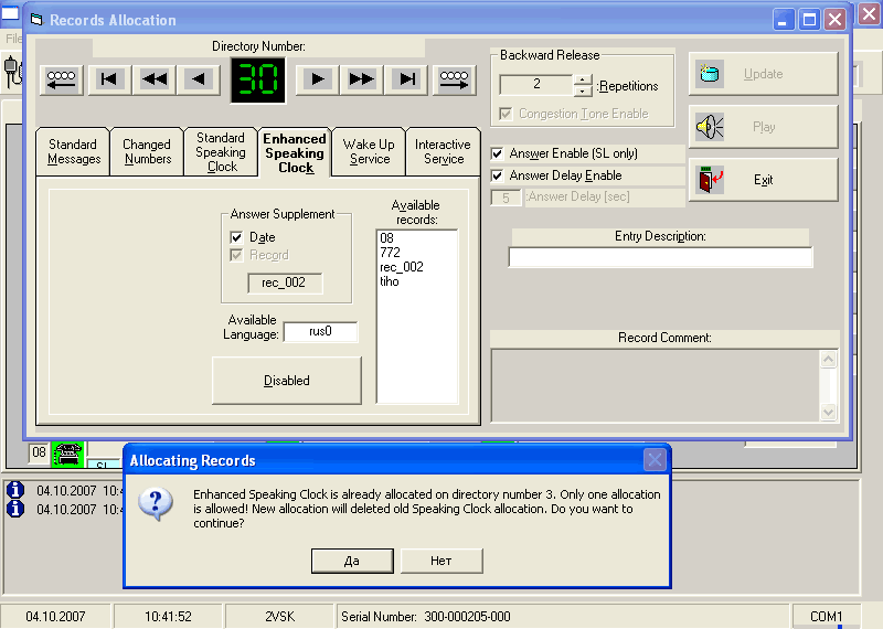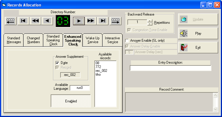 Окно: "Backward Release :Repetitions" - Сколько раз повторить сообщение, перед тем как