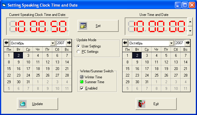 Меню "Winter/Summer Switch" - переключение с зимнего времени на летнее.